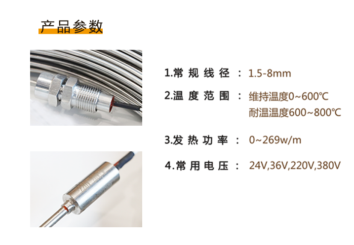 MI加熱電纜高溫伴熱是為了解決管體、槽、閥門等的高溫伴熱或局部加熱而設計制造的,可用于工廠一區、二區爆炸氣體混合物T3組場所.電伴熱產品需要滿足高溫條件和大發熱功率保溫加熱混合場所,具有優良的機械強度,耐腐蝕等特點。