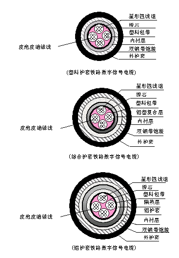 | PTYL23 | 聚乙烯J緣鋁護套鋼帶鎧裝聚乙烯外護套鐵路信號電纜 |