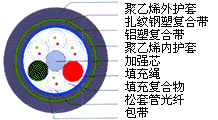 產(chǎn)品型號: GYSTA53也叫(GYTA53) 光纖松套管 金屬中芯加強(qiáng)件 纜芯填充油膏 雙涂料鋁帶粘結(jié)PE內(nèi)護(hù)套 軋紋鋼帶粘結(jié)PE外護(hù)套 | |||